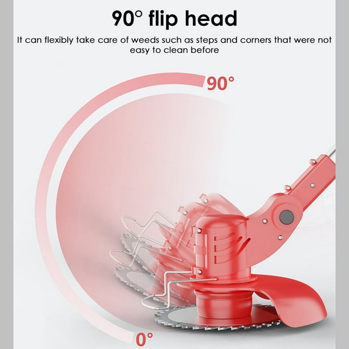 【Humanized design】When working in the garden, you can freely adjust the angle of the mower head (0-90 adjustment) to cut sloping lawns or gaps that are difficult to clean, so as to obtain more comfortable and balanced control.