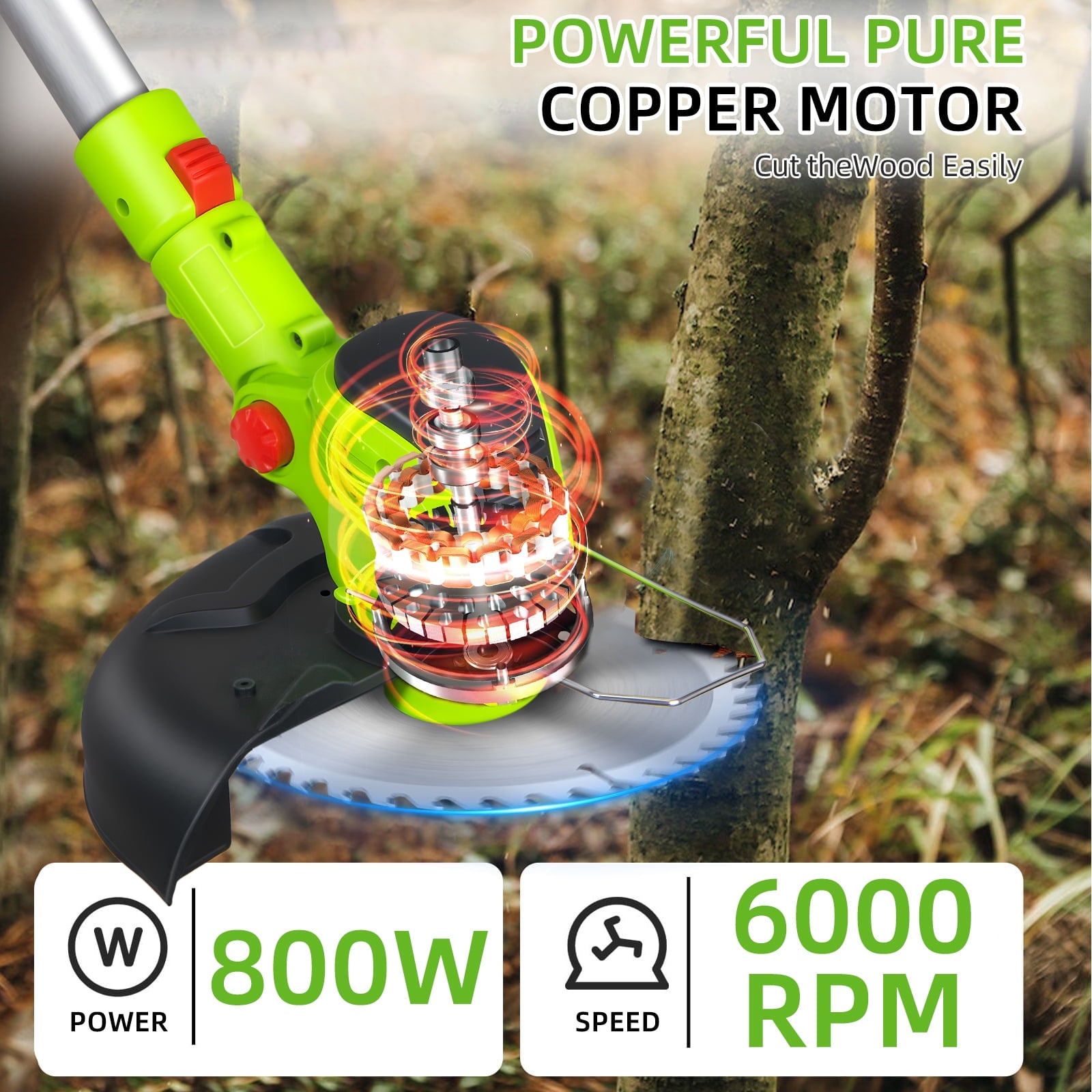 🏅【Advanced Weed Wacker Battery Operated】Weed wacker battery powered is built to handle heavier workloads, brushless motor results in less friction and allows the cordless weed wacker to achieve a maximum 12000 RPM speed which allows electric weed eater to have a better run time and longer tool life