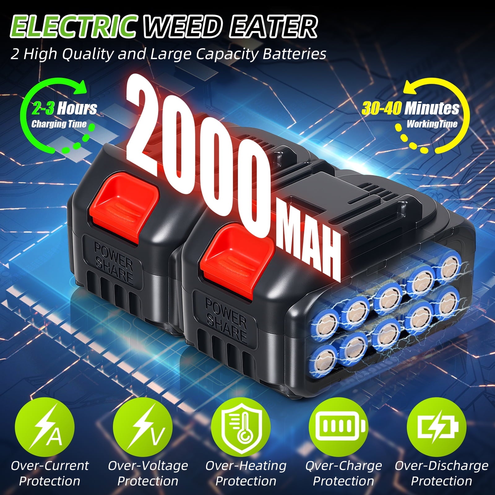 - 5.🏅【After-sales Service】You'll receive 2 x 2000mAh Batteries, 2 x 6-inch Circular Saw Blades, 2 x 8-inch S-shaped Saw Blades, 2 x Grass Cutting Ropes, 20 x Plastic Blades , etc. We are committed to providing our customers with high-quality products and the best shopping experience. 24/7 customer service is offered to solve any problems weed wacker you would meet